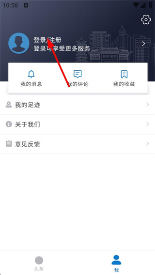2、在個(gè)人頁(yè)面,點(diǎn)擊登錄注冊(cè)按鈕,進(jìn)入登錄頁(yè)面。