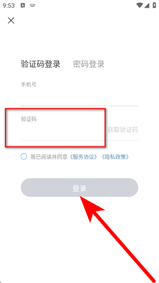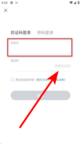 3、在驗(yàn)證碼登錄頁(yè)面,輸入手機(jī)號(hào),點(diǎn)擊獲取驗(yàn)證碼。