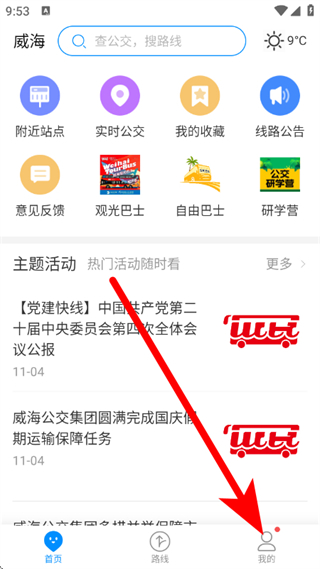 1、打開(kāi)威海公交,點(diǎn)擊底部我的,進(jìn)入我的頁(yè)面。