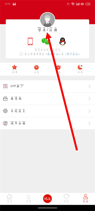 2、在我的頁面,點(diǎn)擊登錄注冊,進(jìn)入注冊頁面。