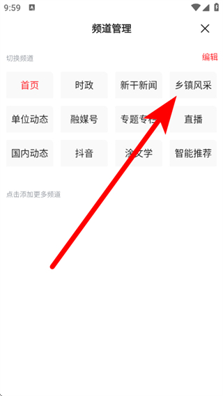 2、在頻道管理頁面,點擊鄉(xiāng)鎮(zhèn)風(fēng)采,進入頻道。