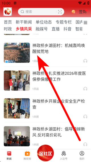 3、在鄉(xiāng)鎮(zhèn)風(fēng)采頻道,點擊感興趣的新聞,進入詳情頁面。