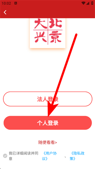 3、在登錄選擇頁面,點(diǎn)擊個(gè)人登錄,進(jìn)入頁面。
