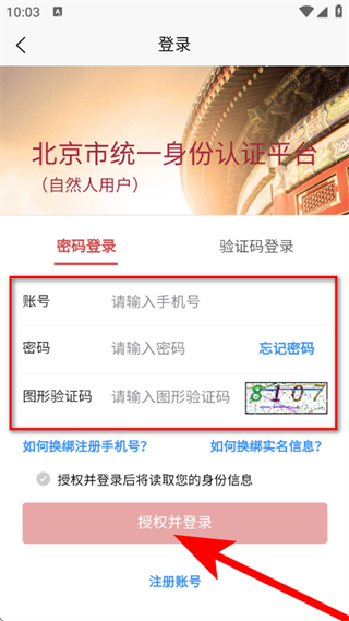 4、選擇密碼登錄方式,輸入手機(jī)號(hào)、密碼、圖形驗(yàn)證碼,勾選后,點(diǎn)擊授權(quán)并登錄,完成操作。
