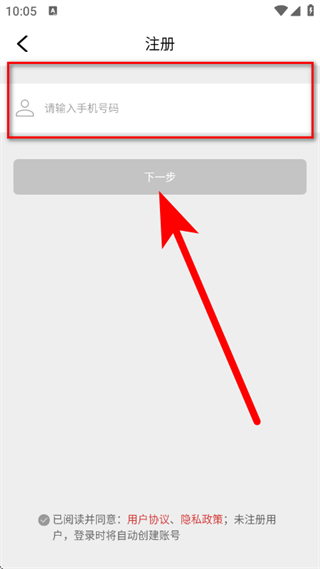 3、在注冊(cè)頁(yè)面,輸入手機(jī)號(hào)碼,點(diǎn)擊下一步。