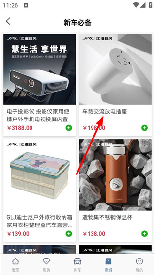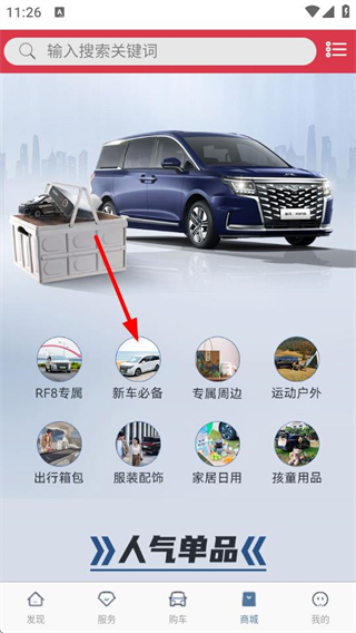 2、在商城頁面,點(diǎn)擊新車必備分類,進(jìn)入對(duì)應(yīng)商品列表頁面。