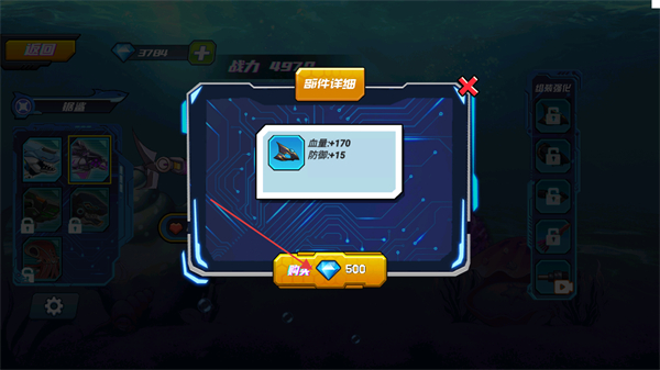 4、完成購(gòu)買后,拖動(dòng)右側(cè)的已經(jīng)擁有的裝備安裝到機(jī)械鯊魚身上指定為止。