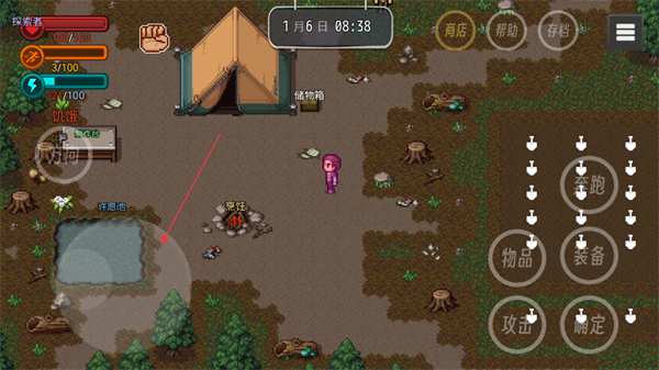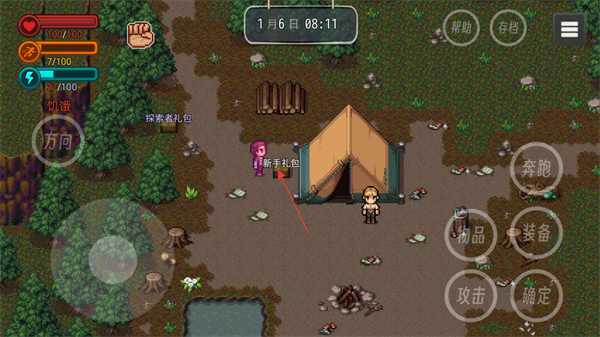 2、通過(guò)左下角的輪盤(pán)控制角色,在森林中探索獲取物資生存。