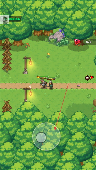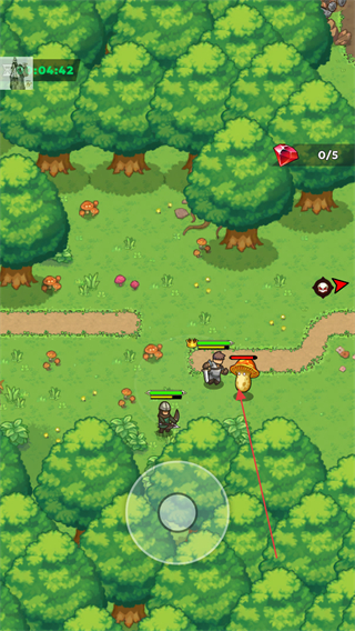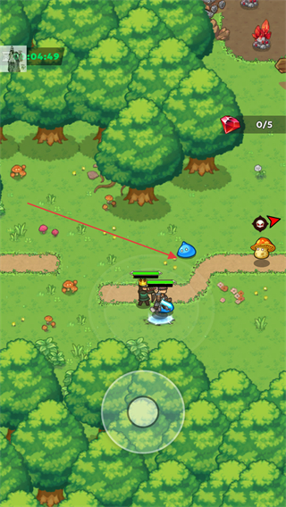1、通過虛擬搖桿操控角色在森林場景中移動,探索地圖,尋找任務(wù)目標(biāo)和資源。