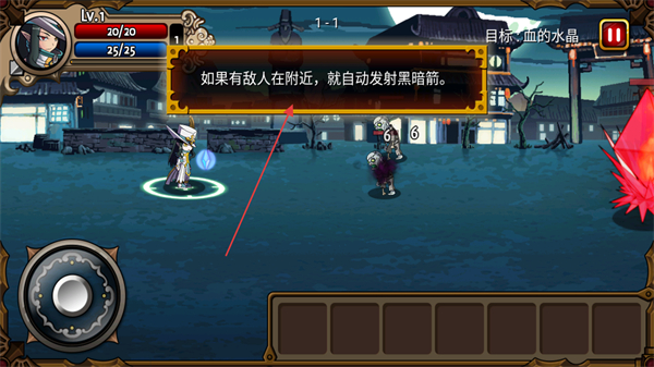 2、當敵人靠近時,角色會自動發(fā)射黑暗箭攻擊敵人,利用這一機制消滅沿途的怪物。