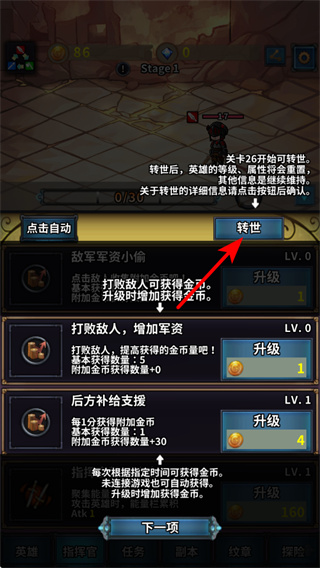 3、遇到轉(zhuǎn)世功能時,可點擊了解其規(guī)則和效果,轉(zhuǎn)世后英雄將獲得新的成長機會,提升隊伍整體戰(zhàn)力。