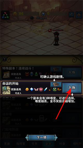 4、點擊入場可進入副本場景,進入前可查看副本難度和獎勵,結(jié)合自身隊伍戰(zhàn)力選擇合適副本。