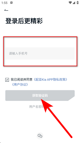 3、在登錄頁(yè)面,輸入手機(jī)號(hào),點(diǎn)擊獲取驗(yàn)證碼。