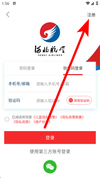 3、在登錄頁(yè)面,點(diǎn)擊右上角注冊(cè),進(jìn)入注冊(cè)頁(yè)面。
