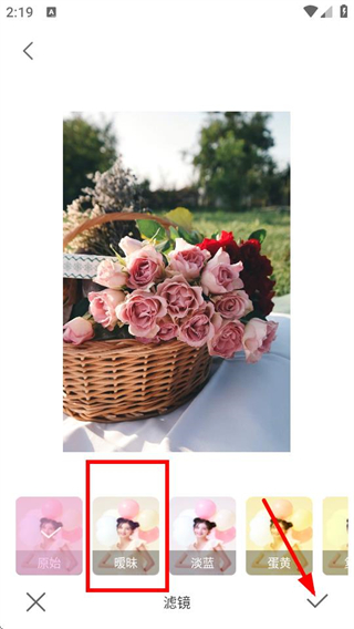 4、在濾鏡選擇頁(yè)面,選擇濾鏡后,點(diǎn)擊下方箭頭即可應(yīng)用該濾鏡。