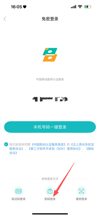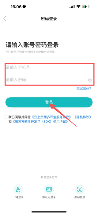 4、在密碼登錄界面,輸入手機(jī)號(hào)和密碼,點(diǎn)擊登錄,完成登錄操作。