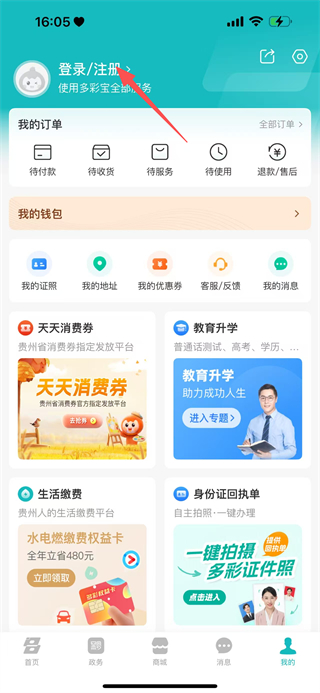 2、在個(gè)人中心頁(yè)面,點(diǎn)擊登錄/注冊(cè),進(jìn)入登錄選擇界面。