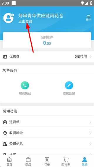 2、在個人頁面,點(diǎn)擊點(diǎn)擊登錄區(qū)域,進(jìn)入登錄頁面。