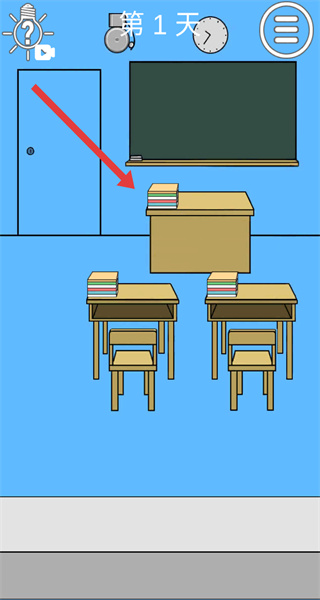 1、在游戲界面,點(diǎn)擊老師講桌上的書本,使其散落。
