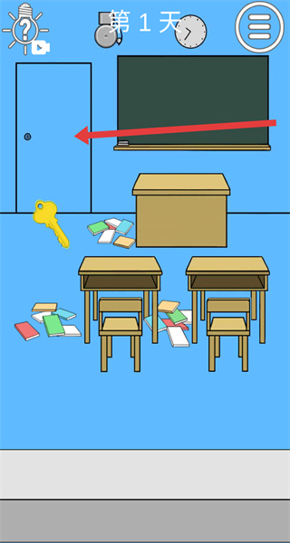 2、書本散落后,會出現(xiàn)一把黃色鑰匙,拖動鑰匙到門前。