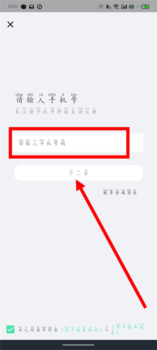 3、在注冊頁面,輸入手機號,點擊下一步。