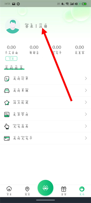 2、在個人頁面,點擊注冊,進(jìn)入注冊頁面。