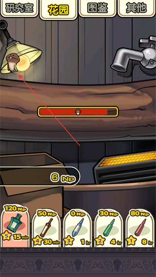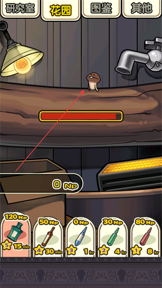 2、可以通過點擊下方的各類道具如不同NP消耗的工具來加速蘑菇的生長或獲取更多NP。