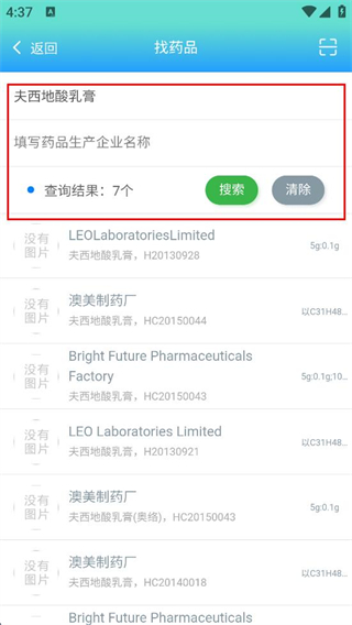 3、可填寫藥品生產(chǎn)企業(yè)名稱,然后點擊搜索按鈕,即可查看藥品查詢結(jié)果。