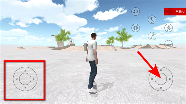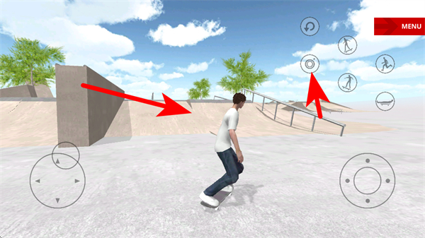 2、朝著滑板場地的坡道等區(qū)域移動,同時(shí)點(diǎn)擊右上角動作按鈕,觸發(fā)滑板特技動作。