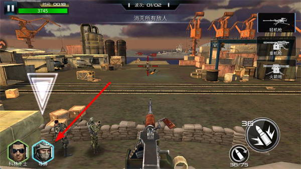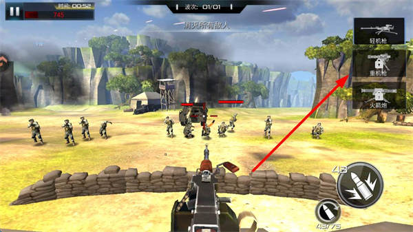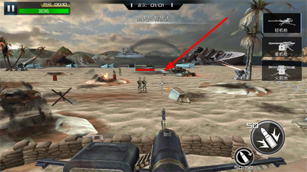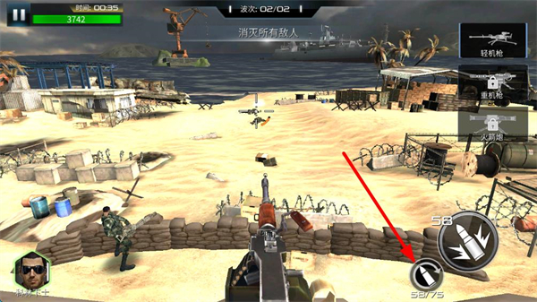 2、右側可切換輕機槍、重機槍、火箭炮等武器,輕機槍適合應對步兵,需根據敵人類型靈活切換。