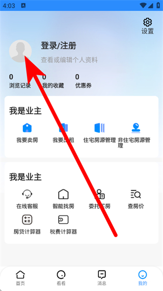 2、在我的頁面,點(diǎn)擊登錄注冊(cè)區(qū)域,進(jìn)入登錄頁面。