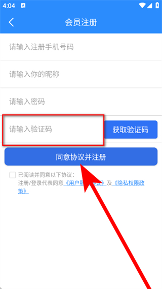 5、輸入驗(yàn)證碼,勾選已閱讀并同意后,點(diǎn)擊同意協(xié)議并注冊(cè),完成操作。