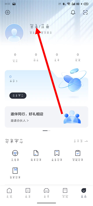 2、在個人頁面,點(diǎn)擊登錄注冊,進(jìn)入登錄頁面。