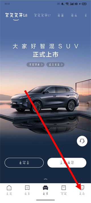 1、打開東風(fēng)風(fēng)神,點(diǎn)擊底部我的,進(jìn)入我的頁面。
