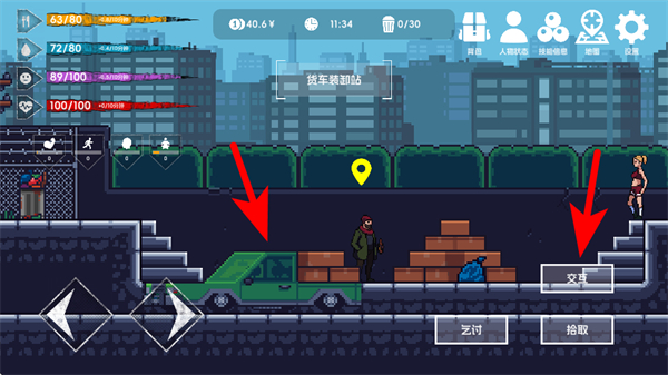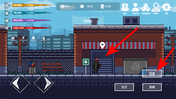 1、在城市場景中尋找可交互地點(diǎn)如回收站,點(diǎn)擊交互進(jìn)入,這是解鎖資源變現(xiàn)的關(guān)鍵操作,通過交互可開啟廢品售賣等生存環(huán)節(jié)。