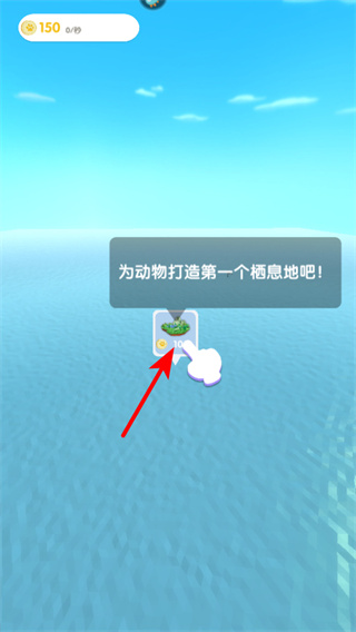 2、游戲中點擊為動物打造棲息地的圖標,開始建造第一個棲息地,構建動物家園基礎操作。