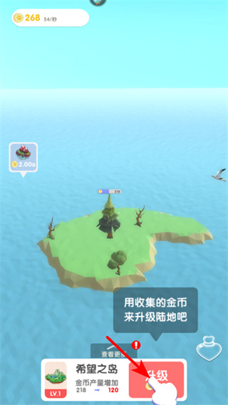 4、收集金幣后,點擊升級按鈕,可升級陸地,提升金幣產量,助力后續(xù)的棲息地建設。