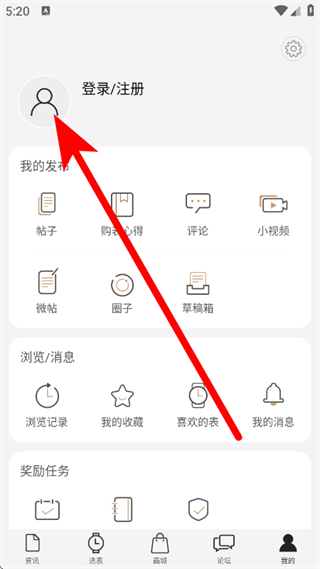 2、點擊登錄注冊區(qū)域,進(jìn)入登錄頁面。