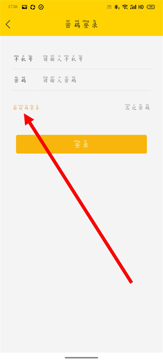 2、在登錄頁(yè)面,點(diǎn)擊驗(yàn)證碼登錄,進(jìn)入驗(yàn)證碼登錄頁(yè)面。