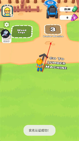 1、實名認證成功后,根據(jù)提示前往LumberMachine,界面顯示當前等級00,擁有$1.3K金錢,可進入SHOP商店。
