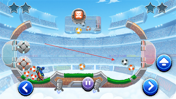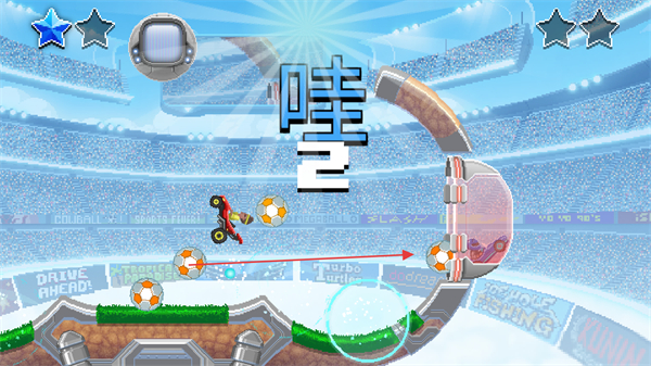 2、利用賽道上的弧形軌道和道具,調整賽車位置,精準撞擊足球,增加射門成功率。
