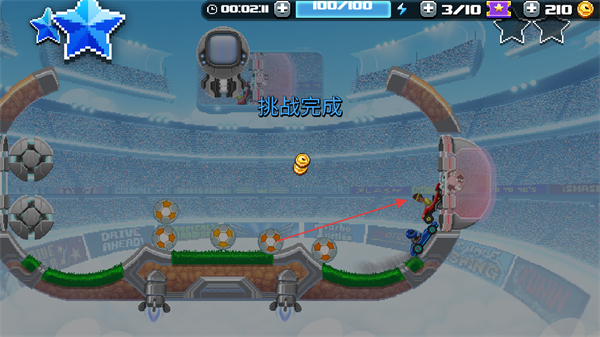 3、將足球成功送入球門,完成射門挑戰(zhàn),可獲得金幣和星級評價。