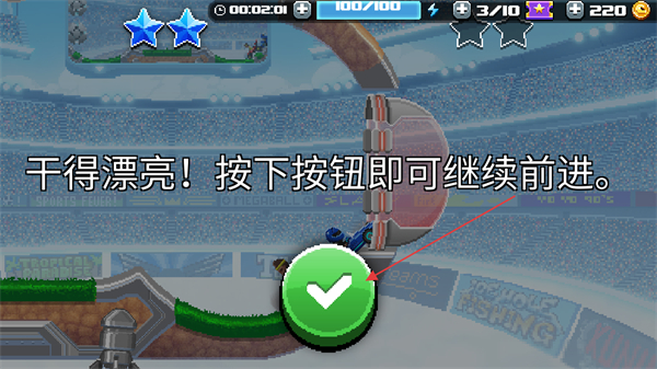 4、挑戰(zhàn)完成后,按下綠色確認按鈕,繼續(xù)進行下一關的足球運動挑戰(zhàn)。