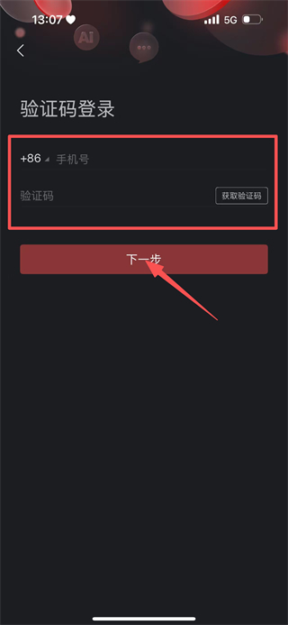 3、輸入手機號,獲取并輸入驗證碼后點擊下一步,完成登錄操作。
