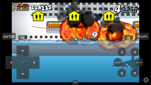 4、點擊右邊的z鍵可以控制鯊魚進行攻擊,破壞建筑和器械發(fā)生爆炸。