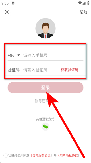 4、在短信登錄界面,輸入手機(jī)號和驗證碼后,點(diǎn)擊登錄。