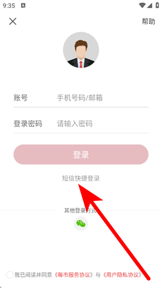 3、在登錄界面,點(diǎn)擊短信快捷登錄,切換至短信登錄模式。