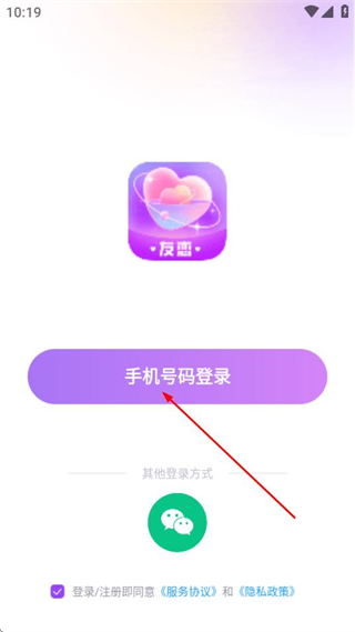1、在友戀登錄選擇頁(yè)面點(diǎn)擊手機(jī)號(hào)碼登錄,進(jìn)入手機(jī)號(hào)登錄頁(yè)面。
