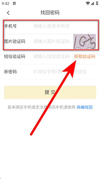 2、在找回密碼頁面,輸入手機號、圖片驗證碼,點擊獲取驗證碼。