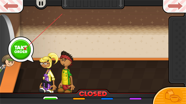 1、開始咖啡店的營業(yè)之旅,點擊綠色按鈕為顧客提供點餐服務(wù)。